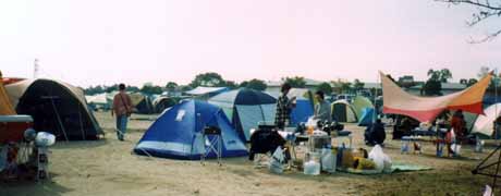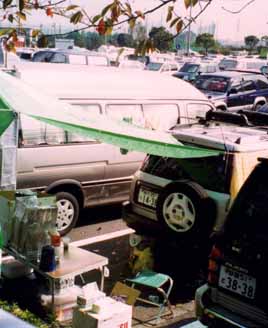 車のない人はテント村に住みつきます。貸しテントを利用する人達も結構いるそうです。平和な日本にもこんなレース難民のキャンプがあるものですね。