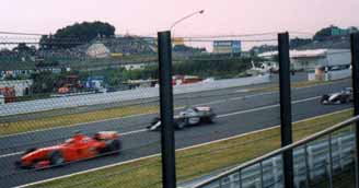 D席から左手は第一コーナーです。殆どの選手はバックファイヤーの爆音を立てながら減速して急カーブを曲がりますが、シューマッハだけは余計な音をたてないでスーッとコーナーを回ります。ここが彼の凄いところです。