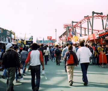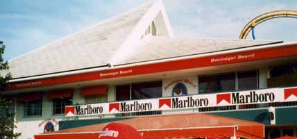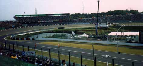 という訳で、28日のフリー走行は見れませんでしたが、10月28日−30日に行われた1999年度FIA主催のF1世界選手権シリーズ第16戦を見にはるばる鈴鹿サーキットにやって来ました。テレビでは何回か観たことはありますが、本物のF1レースを観戦するのは生まれて始めてです。F1を観るには先ずチケットを購入しなければなりません。鈴鹿サーキットには自由席を含めて全部で10万席近くもあるそうですが、いい席は発売直後に売り切れてしまいます。私はレースの一週間位前に買ったのですが、第一コーナー手前のスタンドにある”D”席のネット裏を手に入れるのがやっとでした。一番高いチケットを買うと、ピット見学が出来る上に昼食も付いていますが、ナント25万円もします!スタンドの中央席ですら5−9万円もするのです。自由席は9千円ですが、山の上とかスピンカーブの近くにあり、文字通り席は自由なものの始めての観戦にはちょっと不向きです。”D”席からはスタートラインは見えませんが、直線コースで最高スピードに達した後で第一コーナーを曲がる時のF1ドライバーならではのスリリングなテクニックを堪能することができるなかなかの場所に位置しています。目の前に巨大なスクリーンがありますので、常時レースの全体が見てとれます。