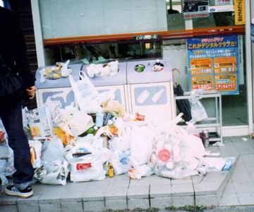 で、そんなテント村の住民がどうやって食料を調達するかといいますと、近くのコンビニを利用するのです。最近テレビのコマーシャルでも馴染みの『サークルK』というコンビニが駐車場の近くにあるのですが、ここが格好の食料備蓄基地になるのです。