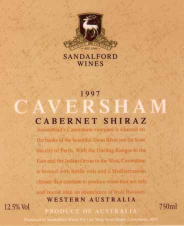 - (赤) オーストラリア: SANDALFORD WINES CAVERSHAM CABERNET SHIRAZ (1997)