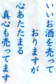 小さなお店の割には意気込みが大きいですね。確かに、喜びのお酒は人々を幸せにし、最終的には社会に役立つのでしょうけど。。。