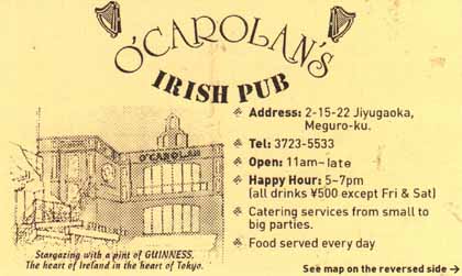 自由が丘には昼間っから開いているパブがあります。以前ご紹介しましたが(ここをご覧下さい)、ただのパブだと思っていましたらワインも売っているそうです。そういえば、お店の中に小さなコーナーがあって何種類かのワインが並んでいましたね。ちょうどお店の前を通りかかりますと、中世アイルランドのケルティック・ハープのアフタヌーン・コンサートをやるとのこと。お食事付きで2、500円ということなので昼下がりのリッチな時間を過ごそうと3階にあるお店に続く階段を登って行きます。階段を上がった2階にはグルメ雑誌などでもよく紹介される香港レストランがあります。その上の3階にこのアイリッシュパブがある訳です。これはあまり知られていないのですが、この2階と3階の間に中2階があって、秘密の扉を開けるとそこも飲み屋さんになっているとのことです。でも普通はそんな扉があるとは気がつきません。私も未だにどこに扉があるのか分かりません。
