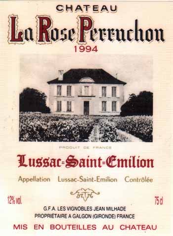 - (赤) フランス: CHATEAU LA ROSE PERRUCHON (1994)