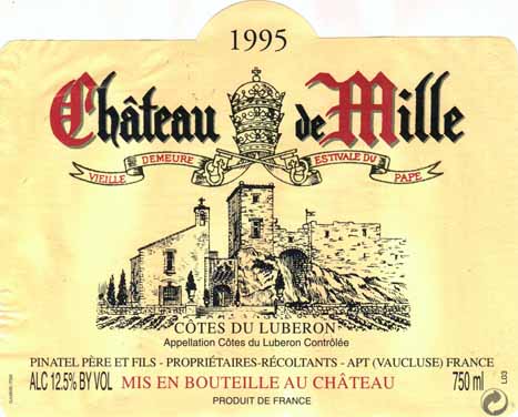 Built in 12th century, it was the summer RESIDENCE OF THE POPES when they were living in Avignon. After strict selection of the grapes from Syrah, Grenache, the wine is produced with traditional and natural methods. Matured in old oak barrels (foudres) for 18 months, it is a full-bodied wine, which can be compared to most of the Chateauneuf du Pape wines. Rated in R. PARKER Guide as an excellent producer wich (which ?) says "The best estate in PROVENCE is the CHATEAU DE MILLE... The wine is excellent".