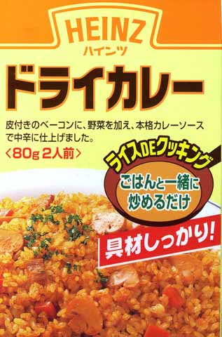 ところで、この赤ワインの美味しさを引き出したのは『ハインツのドライカレー』でした。冷やご飯が残った時など、現代の飽食に慣れてしまった方は見向きもしませんが、お料理によっては炊き立てのご飯以上に美味しく頂けるのです。ハインツの『ライスdeクッキング』シリーズは、量こそ多くはありませんが、具材はしっかりしたものです。かなりの量のご飯と炒めても十分に間に合います。ドライカレーのスパイシーさが赤ワインに合う合う。。。