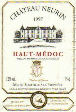 - (赤) フランス: CHATEAU NEURIN HAUT-MEDOC (1997)