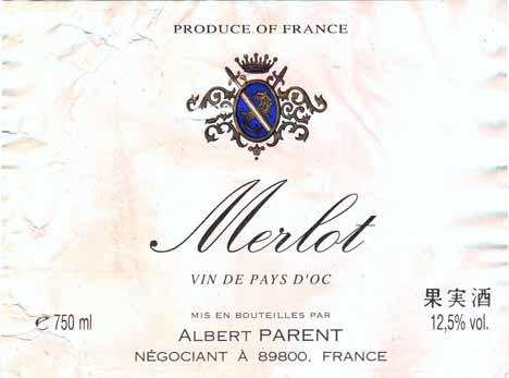 - (赤) フランス: ALBERT PARENT MERLOT (1997)