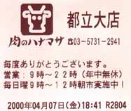 都立大学駅のあたりは東横線が高架になっているので桜の咲き具合が毎朝見てとれます。駅の周辺は特に大きなお店もなく、昔ながらの商店街といった感じです。今まで気がつかなかったのですが、駅の裏手に『肉のハナマサ』のお店を見つけました。狭い敷地に2階建と、ミニスーパー並みの広さですが、扱っている品々は仰天の安さです。安いだけでなく、ひとつひとつの商品がケタ違いの量なのです。肉などはkg単位が当たり前で、冷凍食品もアメリカ並みの大きさです。カレーのルーに至っては1箱で50皿分の量に当たるとか。。。そういえば、お買い物のお客さんもビックな体格の方が多いですね。
