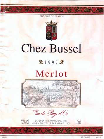- (赤) フランス: CHEZ BUSSEL MERLOT (1997)