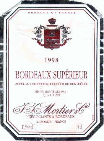 - (白) フランス: BORDEAUX SUPERIEUR (1998)