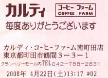 モールの直ぐ右手には、輸入食品を扱っているカルディ・コーヒーファームのお店があります。店内狭しと積み上げられた輸入食品に混じって、コーヒーの挽き売りコーナーがあります。カルディのコーヒーはとても風味が良く、一度飲むとなかなか他のブランドに代えられません。この日はオープン記念ということで、殆どのコーヒーが半額サービスで売られていました。そうなると普段なかなか買えない高価なコーヒーを求めるのが人情というものでしょう。という訳でジャマイカ・コーヒーをゲット。。。