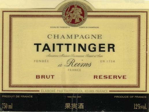 - (シャンパン) フランス: CHAMPAGNE TAITTINGER BRUT RESERVE