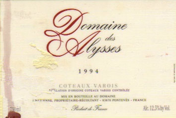 - (赤) フランス: DOMAINE ALYSSES COTEAUX VAROIS (1994)