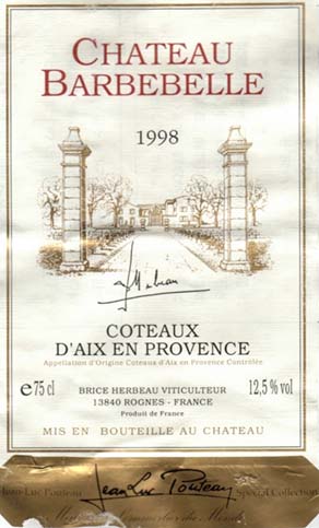 - (ロゼ) フランス: CHATEAU BARBEBELLE COTEAUX D'AIX EN PROVENCE (1998)