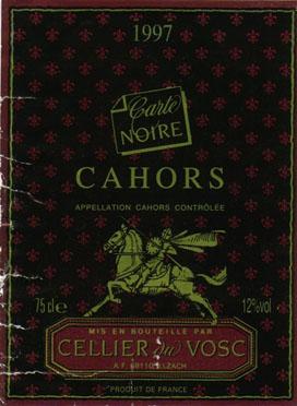 何しろ店内は千円ワインの宝庫です。高級なワインも勿論ありますが、700円から2千円位の範囲のワインが特に充実しています。その中から慎重に選んだ5本の中で一番高かったのがこのカオールです。と言っても5本買っても5千円しませんでしたからどの程度のワインかは押して知るべしでしょうけど。。。