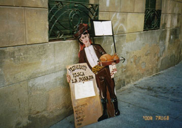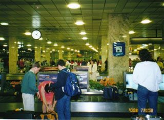 やがて飛行機は徐々に高度を下げ、昼下がりのマドリッド・バラハス空港に着陸しました。窓から見ますと、首都の空港とは思えない位にこじんまりしています。どこの空港でも幅をきかせているジャンボ機の姿が殆ど見えません。飛行機から降り、入国審査の窓口に並びますが殆どフリーパスの状態です。パスポートにも入国のハンコを押してくれません。ちょっと残念ですねぇ。と、ここまでは順調でした。さて、バッゲージ・クレームで指定されたターンテーブルの前に行きますと、最初チョロと荷物が出ただけで後続の荷物が全く出てきません。最初は『ここはぁスペイン♪♪♪』と鷹揚に構えていましたが20分経っても音沙汰なしです。日本でしたらクレームが出て(何時もの軽い駄洒落です)大騒ぎになるところですが、誰も何も云わず辛抱強く待っています。30分程待って、ようやく残りの荷物が出てきました。