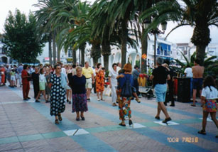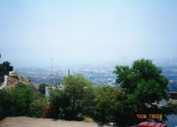 エステポナから20分ほどでマルベーリャに到着です。マルベーリャは、東のトレモリーノスと並ぶコスタ・デル・ソルの2大リゾート地だそうです。確かに山裾を走る高速道路から見ますと、海辺に沿ってマンション風の高層ビルが林立しています。今日は頑張ってネルハまで行こうと思いますのでマルベーリャはパスします。今日の最初の訪問地であるミハスは、マルベーリャから更に20kmほど先のフエンヒローラから山道を登って行くのだそうです。とりあえず、フエンヒローラでN340を降ります。私には別にフエンヒローラで何か見たいとかいう気持ちはサラサラなく、単にミハスへ通じる道がここから出ているということで来ただけなのです。ところがこの町は道路が狭い上に人も車も異様に多いのです。たちまち車は町中の渋滞に嵌ってしまいました。方向転換もままならず、標識を辿ってようやくミハスへの道路を見つけたのは1時間も後のことでした。後から思うに、N340ではなく並行して山側を通るE15にしていたら簡単にミハスへの道に入れたのではないかと思いますが。。。