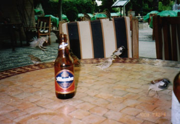 おつまみの豆をポリポリ食べていましたら、あちこちから雀のような小鳥が飛んできます。どうやら宿泊客に餌付けされているようです。私も一つ二つお豆を手に持って差し出しますと、チュッ、チュッと鳴きながらお豆をつまんでいきます。その様子があまりにも可愛いかったのでつい写真を撮り巻くってしまいました。