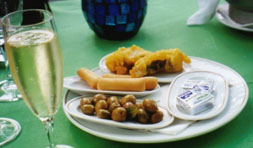 今夜はカヴァからいきましょう。ちょっとしたおつまみが添えられますので、カヴァは食前酒の感覚で頂けます。今日一日の悪夢を追い払うようにカヴァをクイッと飲みます。シュワワァーーー。。。ゴクッ。。。美味しい!おつまみもなかなかいけますねん!