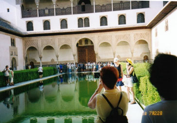 アルハンブラ宮殿の特徴は、イスラム風の装飾もさることながら、その美しい造園にあると云っていいでしょう。中庭には池がめぐらされ、草花が咲き乱れています。アラヤネスの中庭はその代表的な存在のようです。