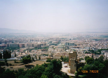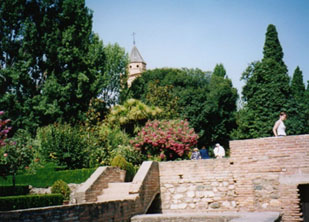 ゴメレス坂を登り、『唯ひとり、神だけが勝利者である』と刻まれた『ブドウ酒の門』をくぐると『アルカサバ』への入口になります。アルバイシンの丘を含む城塞都市の最も重要な要塞として9世紀から13世紀にかけて建設されました。順路に従って上へ上へと狭い階段を上ると、『ベラの塔』の頂上に出ます。この塔からの眺望は圧巻です。背景のシエラ・ネバダの峰々とグラナダ市を取り巻く沃野のパノラマには、思わずため息がでます。