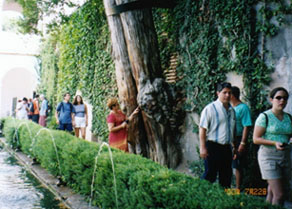ヘネラリフェからの帰り道、壁に押された格好で2本の古木が並んで立っています。片方は幹の中央部におできのようなコブがあります。未婚の女性の方はこの幹に触れると1年以内に結婚できるのだそうです。既婚の男の人はコブのない木の幹に触れると直ぐに離婚できるのだそうです。してみると、コブのない方の木は男の人たちがあまりに力を込めてゴリゴリ擦ったのでコブが取れてしまったのかもしれません。両方の木に触ったらどうなるのでしょうかね?
