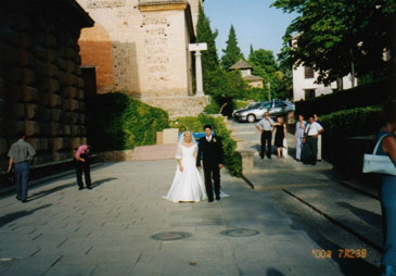 アルハンブラ宮殿の帰り道に、宮殿前の広場で派手にデコレーションされた沢山の車を見ました。どうやら今から結婚式があるようです。それにしても、1組ではありません。後から後から花婿さんと花嫁さんがやって来るのです。合同結婚式か。。。とも思いましたが、何にしてもアルハンブラ宮殿で式をあげるなんて素晴らしいですね。きっと花嫁はヘネラリフェの木の幹にお願いしたのでしょう。花婿はこれから絶対にヘネラリフェに行ってはいけませんよ!