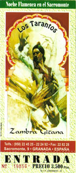という訳で、フラメンコショーが行われるロス・タラントスに着いたのは22時を大分過ぎた頃でした。さすがにあたりは真っ暗で、周辺の様子はよく分かりません。ただ、急な坂の途中であったことは確かです。恐らく道の片方は崖になっていて、そこを穿って洞窟住居になっていたのではないかと思います。あせってタクシーで乗りつけたものですから、珍しい洞窟住居の様子を見逃してしまいました。残念!
