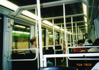 地下鉄の構内は広々としていますが、とても蒸し暑いですね。でも電車に乗ると冷房が効いていてなかなか快適です。それに、車内はそんなに混んでいないのでゆっくり座れます。