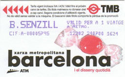 バロセロナの地下鉄の切符です。料金は全線均一で100円位です。いろんな図柄があって面白いですね。