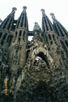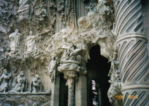 この奇妙というか、異様というか、何とも形容しがたい教会にまつわるエピソードは、未だ建築中にもかかわらず事欠きません。そうしたエピソードを拾い集めるのもいいのですが、ともあれ百聞は一見にしかずといいます。まずは自分の目で見るのが一番です。天空に向かってそびえ立つ8本の塔の曲線もさることながら、御誕生の門の前に立ってキリストの降誕を描いた彫刻を眺めていますと、とてもそれが石で出来たものとは思えません。まるで生き物のように血が流れ、心臓が脈打ち、今にも飲み込まれそうになります。建物内にはエレベーターもありますが、石段を踏みしめて登っていきますと、途中に幾つもある石窓からバロセロナの街が見渡せます。夕暮れの街の美しさに見とれていますと、この異様な石の建物に自分がしっかり包み込まれているような錯覚に陥ることでしょう。