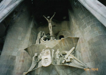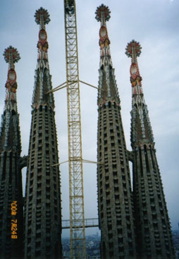 晩年をキリスト教徒として生き、この教会の建築にすべてを賭けたガウディは、それこそ着のみ着のままの姿で建築中の教会内に寝泊りし、たまに町に出たときなどはそのあまりのみすぼらしさに道行く人が浮浪者と間違えて小銭を投げつけるほどだったといいます。彼はその僅かなお金も拾い集めて寄金として大切に扱ったそうです。そのガウディが事故で亡くなってから既に60年以上が過ぎました。建築は引き続き進められていますが、観光客の支払う見学料(見物料ではありませんぞ)が主たる財源だといいますから、200年後とも云われている完成のときが果たして本当に迎えられるかどうか危ぶむ声もあります。また、一瞬の閃きと共にひとつひとつを作り上げていくガウディのやり方を没後その当人の閃きなしに続けられていることに対し、同郷の天才画家ミロなどのように否定的な立場をとる芸術家もいるといいます。