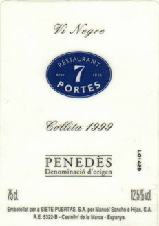 - (赤) スペイン: RESTAURANT 7 PORTES VI NEGRO COLLITA (1999)