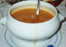 テーブルに並べられたお料理を片っ端から食べ、カヴァに白に赤ワインをガブガブ飲んでいたら(何しろまとめて頼んだもので一度に出て来た。。。)、お待ちかねのスープが運ばれてきました。バロセロナのサルスエラ(?)は、マルセイユのブイヤベースのように具沢山でなく、お魚の濃厚なスープになっています。でも、これが美味しいの何の。。。
