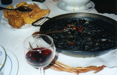 どのお料理も美味しかったのですが、極めつけはこれ、これ,これですよ!イカ墨のパエリアです!グラナダでもイカ墨のパエリアを頂きましたが、さすがに見た目も味も月とスッポン!これ以上の黒はないと思えるような艶々したイカ墨の色です。恐らくたっぷりのオリーブ油を使って料理しているのでしょうけど、食べてみて全く油っこさがないのです。それに、この濃密な味がまた赤ワインに合うこと合うこと。。。