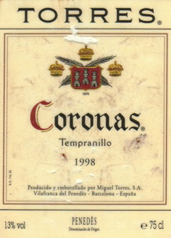 - (赤) スペイン: TORRES CORONAS (1998)