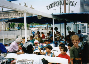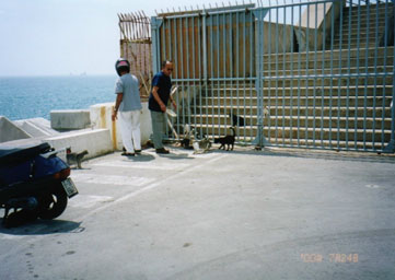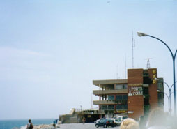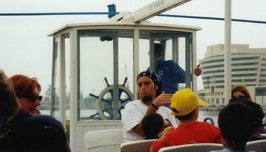 今日は月曜日ですので遊覧船は空いているかと思ったら、殆ど満席でした。2階にあるデッキ席に腰を下ろします。何だかやけに子供が多いですね。どうも小学校の課外授業のようです。生徒達は開放感で好き勝手に動き回り、頭にスカーフを巻いた先生は秩序を保とうと声を枯らします。それでも子供達はキャアーキャアー、ワーワー大変な騒ぎです。やがて遊覧船は岸を離れ、港内を巡るミニツアーに出発します。港には地中海観光クルーズの豪華客船が錨を下ろしています。船は10階建てのビルにも相当する大きさです。コンテナ埠頭には日本の貨物船も停泊しています。穏やかな海風が心地よく、つい眠ってしまいそうになります。30分ほど経ったでしょうか、遊覧船は堤防横の小さな船着場に接岸します。堤防の上には茶色の建物が見えます。あれがシーフードのレストランなのでしょうか?でも、あんまりきれいではないですね。。。それに、ランチ時なのにここで下船する人も殆どいません。ヘンだなぁ。。。とは思いましたが、シーフードの魅力には勝てません。『降ろして下さーーーい!』