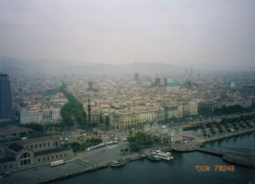 ランブラス大通りを海岸の方角に向かって真っ直ぐに歩きますと、港の入り口に巨大なロータリーがあり、その真中に鉛筆を立てたような細長い塔があります。これがバロセロナの名物であるコロンブスの塔です。その先には遊覧船の船着場があります。また、船着場の横の長い桟橋を進みますと、ショッピングセンターやレストランの入った大きなビルがあります。港を行き交う船を見ながら、ここのレストランでランチを頂くのもいいですね。