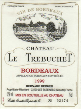 『レ・ヴィニュロン・アルティザン』とは産地共通の名前のようです。表のラベルには『CHATEAU LE TREBUCHET BORDEAUX』とありますので、ボルドー地方のシャトーで造られたのでしょう。特筆すべきは、このワインには食品添加物がないのです。私が今までに飲んだワインで酸化防止剤が入っていないのは、恐らく、これだけではないかと思います。フランス国内に限りますと、有名産地のワインには食品添加物のないものもあるそうですが、輸出する場合にはそのままではムリなのだそうです。ワインに添加物が入らないと、非常にスッキリしたワイン本来の味がすると聞いたことがあります。してみますと、このワインは大変な掘り出し物かも。。。