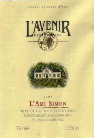 Born at ? Port in Dutch Mauritius, where his father Adriaan was Governor ? colony, educated in Holland, Simon van der Stel made his career with the Dutch East India Company and was appointed Governor of the Cape in 1679. A visionary and outstanding administrator, he encouraged viticetum and welcomed the first French Huguenots to the Cape in 1688. Today, in the shadow of the mountain that bears his name - the Simonsberg - and overlooking Stellenbosch, the town he founded in 1679, L'Avenir Estate reflects Van der Stel's historic connections. Here a Mauritian and a Huguenot descendant strive to produce wine in the apiirit of Simon - L'Ami Simon. This blend can be enjoyed young, but will improve with further maturation.