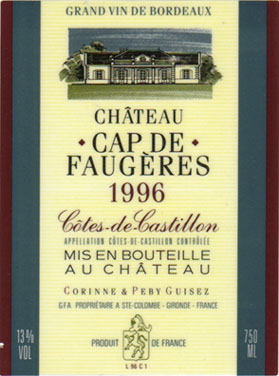 - (赤) フランス: CHATEAU CAP DE FAUGERES COTES DE CASTILLON (1996)