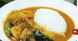 始めに野菜の甘さが広がり、後からオリジナルブレンドのスパイスの辛さと香りが爽快なインド風カレーです。旨味を凝縮させるため、通常より玉葱を多く使用しながら3日間寝かせて仕上げるルウには、和・洋・印の特色を融合させた名古屋的発想が活きています。