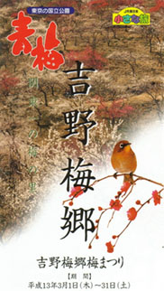 青梅の梅林は沢井から少し戻った『日向和田』というところにあります。日向和田駅から15分ほど歩きますと、関東でも有数の規模を誇る『吉野梅郷』という梅林に辿り着きます。でも今年は寒かったせいか、梅のほころび具合がイマイチですね。屋台は一杯出ているのですが、青梅でたこ焼きを食べても仕方ないし、これは退散するしかないですね。
