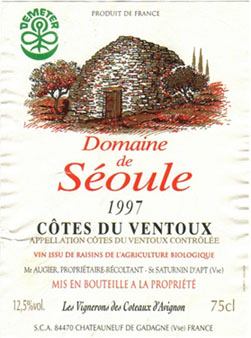 - (赤) フランス: DOMAINE DE SEOULE COTES DU VENTOUX (1997)