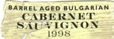 - (赤) ブルガリア: DOMAINE BOYAR PREMIUM OAK CABERNET SAUVIGNON (1998)