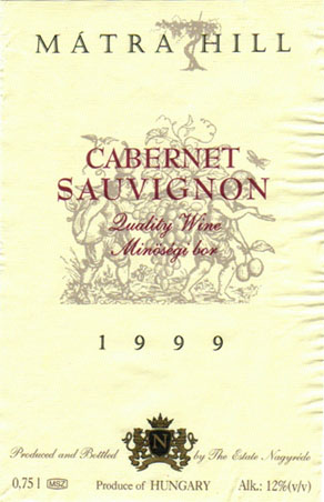 - (赤) ハンガリー: NAGYREDE MATRA HILL CABERNET SAUVIGNON (1999)