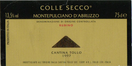 - (赤) イタリア: COLLE SECCO MONTEPULCIANO D'ABRUZZO (1997)