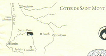 - situe a 150 km a l'ouest de Toulouse, en plein coeur de la Gascogne, il est plante en cepages locaux: Tannat, Pinenc et Cabernet (vins rouges et roses), Arrufiac, Petit Courbu et Mansengs (vins blancs).