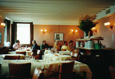 時計は午後の2時を回っています。ランチにはちょっと出遅れましたが、ようやっとハリーズ・バーの入り口に着きました。小さなドアを開けて中に入ります。店内にはテーブルが雑然と並び、地元の人か観光客か分かりませんが、談笑しながら午後のひと時を楽しんでいます。私のお目当てはカルパッチョと蜘蛛蟹なので、とりあえずバーでビールでも飲んでサラッと食べれればそれで満足だった訳です。そんな気持ちで入り口の所に立って案内を待っていましたら、ビシリと制服を着用した若くハンサムなボーイさんが近づいてきます。『お食事をお召し上がりですか?』、『いや、カウンターでビールなぞ。。。』なんてことは言える筈もありません。『ハア、ランチを。。。』と言いますと、ボーイさんは先導してズンズン階段を上がっていきます。私は『ハリーズ・バー』というくらいなので、1階のバーだけがお店かと思っていましたが、どうやら1階はバーが主体、2階(3階だったかな?)がレストランになっているようです。